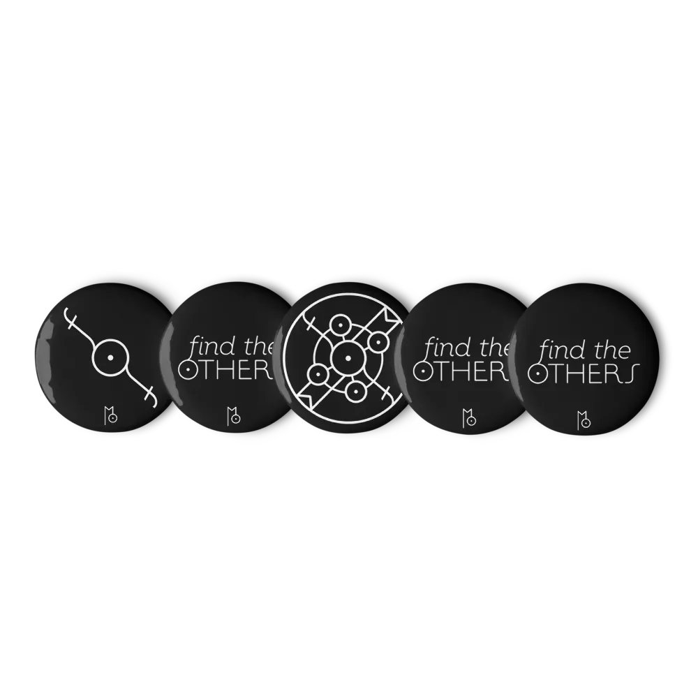 Elevate your style with this collection of 5 pin buttons: three with "Find the Others" and two with the matching MICON™. Add a touch of magical intention to your everyday attire.