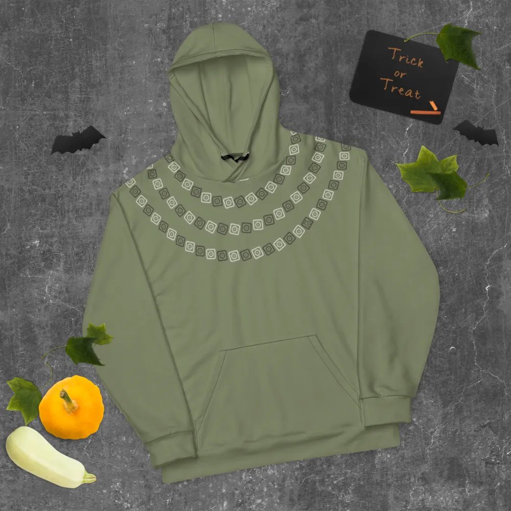 Unisex hoodie made from 95% recycled polyester and 5% spandex, featuring a magical "Optical Sun" MICON™ design by MO, exclusively at MO by Motherhaus.